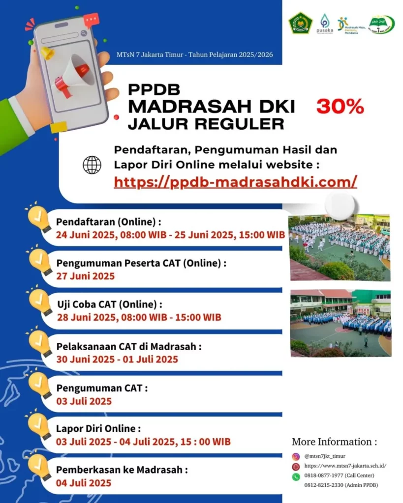 Humas MTs N 7 Jakarta – Kami mengundang seluruh calon peserta didik baru untuk mendaftar melalui Jalur Reguler yang telah resmi dibuka.